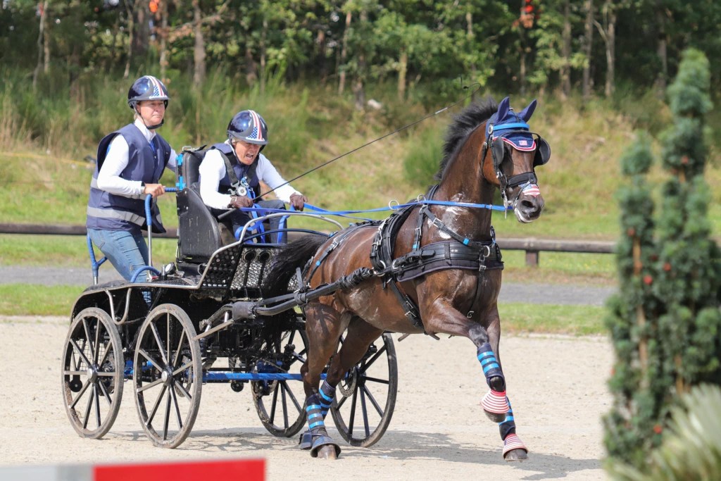 The driven dressage phase tests the Driver and their equine on harmony, impulsion, ease of movement, and suppleness through a sequence of scored movements. The second phase is the fast-paced and demanding cross-country marathon, which tests fitness and stamina along with driver’s accuracy and judgment.The combination navigates an intricate series of hazards which may include water, steep hills, and sharp turns – all within the fastest time possible. The final phase, a cones course, times the competitor as they accurately negotiate an intricate, winding course of narrowly-set cones without knocking them with the carriage wheels.